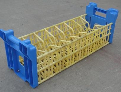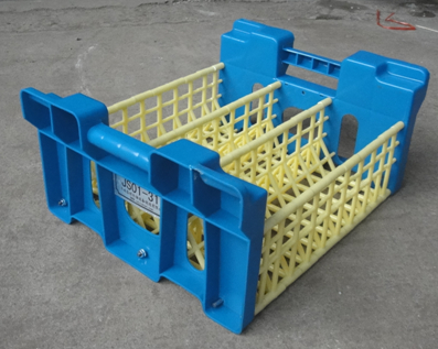 ◇組合周轉筐由共聚丙乙烯原料合成制作,分把手、支架、隔架、φ6MM加長螺絲桿、托底鋼絲五部分組合緊固而成。