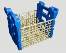 ◇組合周轉筐由共聚丙乙烯原料合成制作,分把手、支架、隔架、φ6MM加長螺絲桿、托底鋼絲五部分組合緊固而成。